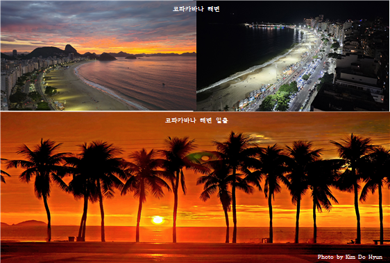 브라질의 코파카바나 해변은 4km에 걸친 반달 모양의 백사장과 일 년 내내 기온이 높아 세계적으로도 유명한 해수욕장이다. 우리가 투숙한 오톤호텔은 해변의 중심에 위치한 최고층 건물로 코파카바나의 랜드마크이다. 따라서 해변을 드나드는 것은 물론 주변 지역 산책 등에도 아주 편리하였다.