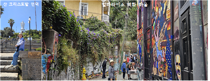 칠레(Chile)는 남북으로 길이 4,300km, 폭은 약 175km의 특이한 국토를 가지고 있다. 북쪽의 아타카마(Atacama)로부터 수도 산티아고를 거쳐 푸에르토 나탈레스까지 비행기에서 내려다본 칠레는 끝없는 황무지의 연속이었다. 수도 산티아고에서는 산 크리스토발 언덕에 올라 도시 전체를 조망하였고, 유네스코 세계문화유산으로 지정된 발파라이소의 벽화 마을을 거닐며 다양하고 재미있는 그림들을 감상하였다.