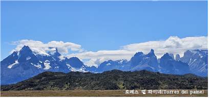 칠레 방문에서 가장 인상적인 장소는 토레스 델 파이네(Torres del paine)라고 말할 수 있다. 트레킹의 명소로 세계에서 많은 여행자가 찾아오지만, 우리 일행은 약식 트레킹을 하면서, 사진에서처럼 구름으로 살짝 드리워진 토레스 델 파이네의 모습을 어렵게 볼 수 있었으며, 육로로 칠레 국경을 넘어 아르헨티나의 엘 칼라파테란 도시로 이동하였다.