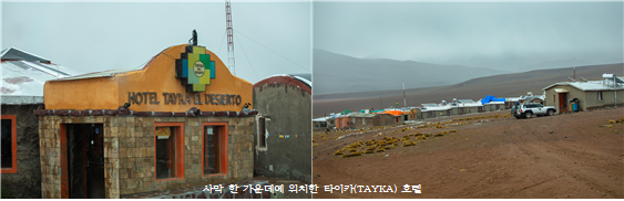 숙소도 타 여행사에 비해 여건이 좋거나 특별한 점이 있었다고 생각하는데, 특히 볼리비아 여행을 마치고 칠레로 넘어가기 전, 고도 4,500m에 위치한 타이카(TAYKA) 호텔의 투숙 경험은 오랫동안 기억될 것 같다. 사막 한 가운데 그것도 주변에 어떠한 편의시설도 없는 외딴 호텔은 예약도 쉽지 않지만 여러 가지 일정계획 수립에 걸림돌이 되기 때문에, 다른 여행사는 그 호텔을 선정하지 않는다고 들었는데, 개인적으로는 그 호텔에서 숙박하며 겪었던 특별함과 고산증 경험은 오히려 잊지 못할 추억으로 남을 것 같다.