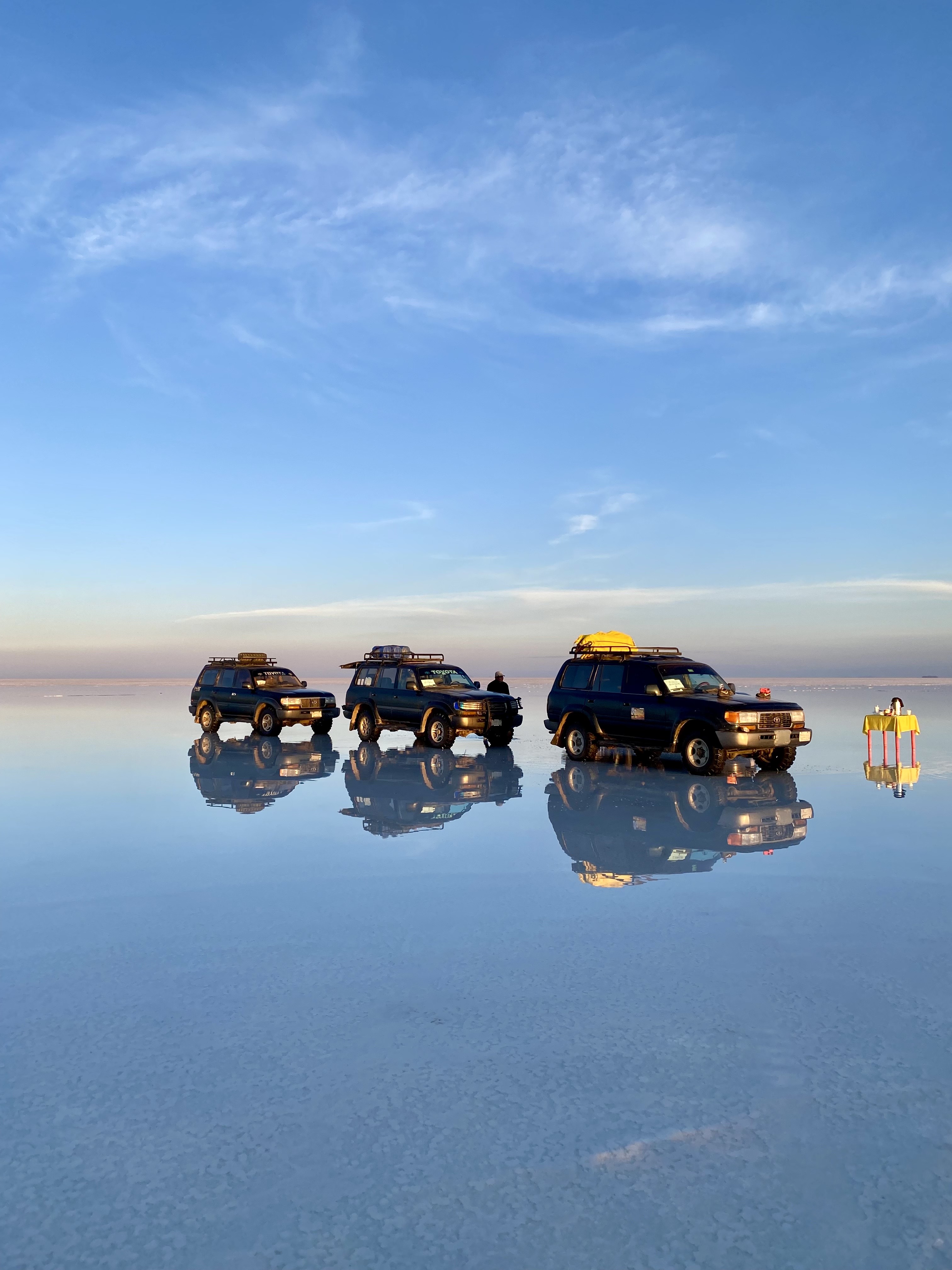 대중 매체를 통해 이미 유명한 우유니 소금사막. 중학생 때 가보고 싶은 장소 버킷리스트에 작성했던 곳을 이렇게 빨리 만나게 될 줄 몰랐다. 선글라스 없으면 눈을 뜰 수 없을 정도로 눈부시고 하얀 소금사막이 끝없이 펼쳐져 있다. 여기서 열심히 사진 찍고 다같이 보낸 시간이 그저 행복했다. 아무것도 모르고 캡모자를 쓰고 귀에만 선크림을 바르지 않은 덕분에 화상을 입었지만..