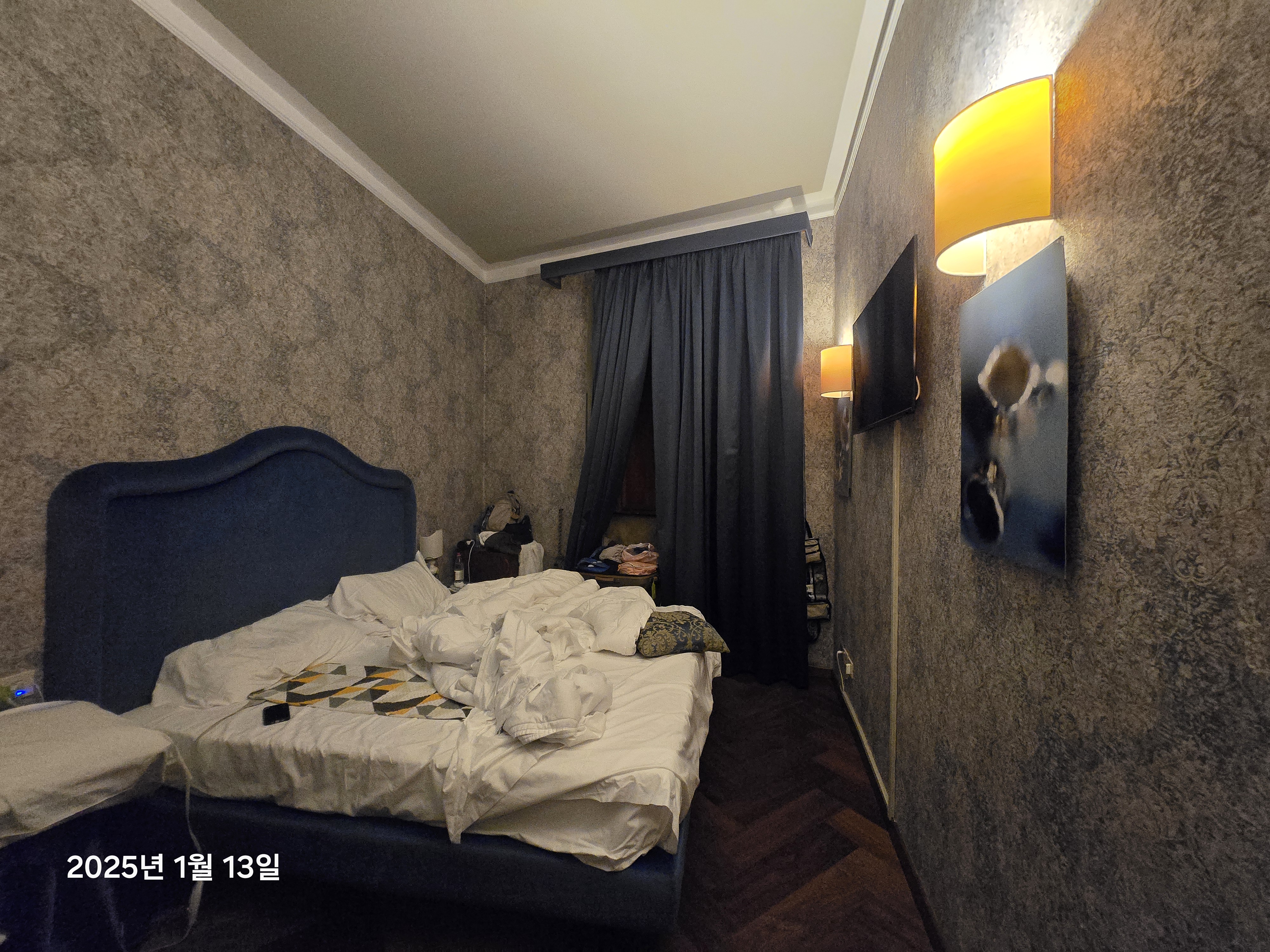 *피렌체(2박): 최!최!최악의 숙소. 유럽 인솔 경험이 수백회에 달한다고 홍보하지 않았나? 그 수백 번 다녀보고 정한 숙소가 여기? 여긴 도저히 호텔이라 할 수 없는 수준의 그냥 관리 안된 싸구려 여관이었다. 무슨 퇴폐 영업을 하는 곳인가? 아님 이것도 유럽 감성? 사방이 모두 붉은색으로 도배되어 있고 더러운 붉은 카펫이 깔려있는, 역겨운 냄새 때문에 정신이 이상해질것만 같아던 숙소! 이 방에서는 잠시도 앉아 있을 수 없었다. 인솔자를 불러 방을 보여주고 바꿔달라했다. 그런데 방이 없단다. 딱 하나 남아있는데 그곳은 더블 침대란다. 일단 가보고 결정하기로 했다. 여기 또한 기막혔다. 더블 침대에 방이 작아 캐리어 두 개를 펼칠 수 없었고, 난 캐리어 한쪽을 세워서 사용해야하는 불편함을 감수해야했다. 빠뚤어진 액자, 얼룩덜룩 무늬가 있는 회색벽, 그나마 다행은 바닥이 마루라서 역겨운 카펫 냄새는 맡지 않을 수 있었다. 물론 이 방 말고는 선택의 여지가 없었다. 이곳에서 이틀이라니... 숙소에 앉아 있으면 우울하고 분노가 치밀어 올라 나와 나의 룸메이트는 감정을 다스려가며 지내야했다. 그리고 8시에 기차역으로 출발해야하는데 조식 시작 시간이 7시30분!! 이런것도 알아보지 않고 숙소를 정했나? 베테랑 유럽 전문가는 도대체 어디에?