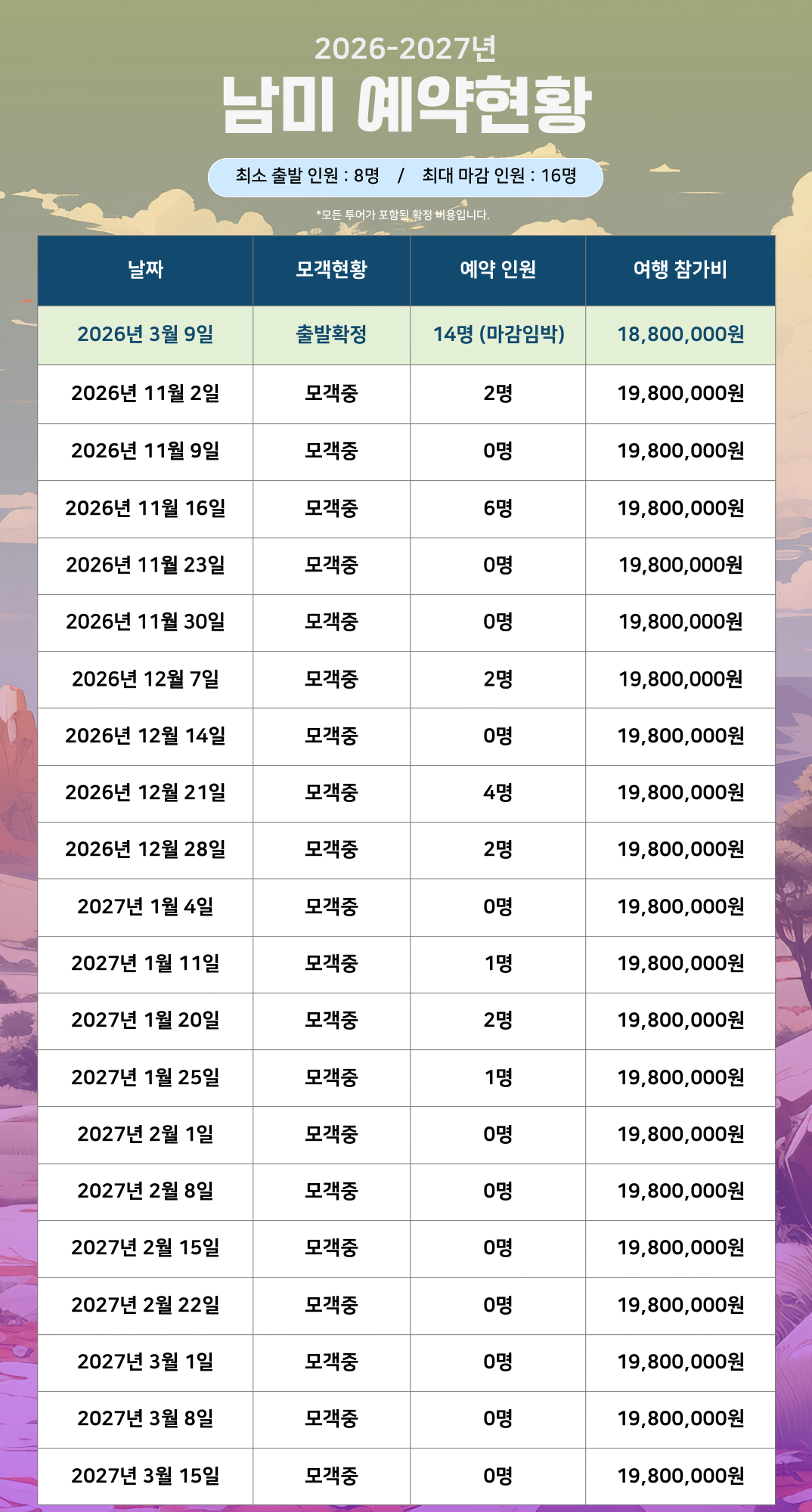 | 식사 | 조식 호텔식 중식 자유식 석식 자유식 | ||||||||||||||||||||||||||||||