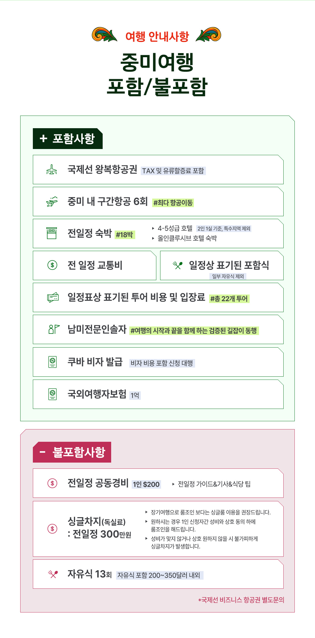 ![]() ● 호텔 조식 후 멕시코시티 공항으로 이동 ● 멕시코시티 출발 ● 하바나 도착 ● 하바나 선셋 야경투어 |