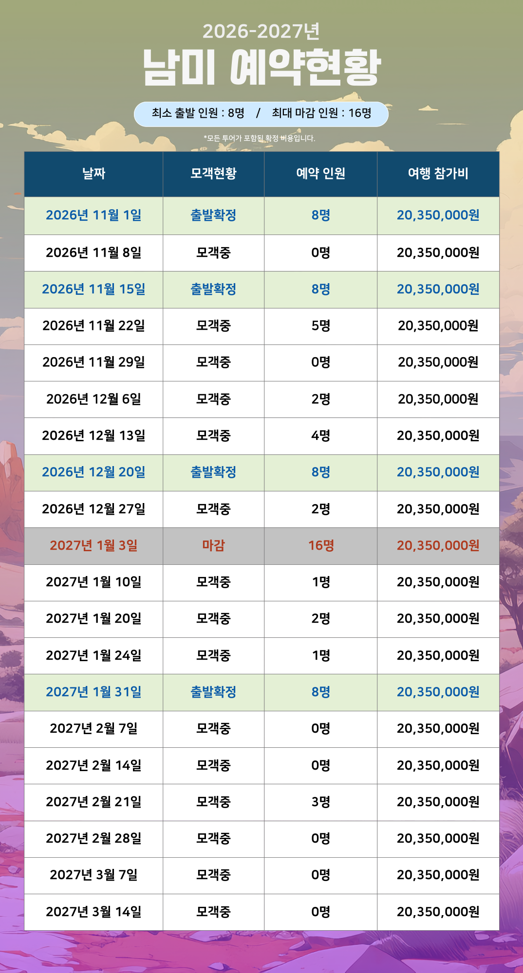 - 시점: 최소 출발 인원(8명) 충족 후 출발 확정 및 항공 발권 진행 시 안내